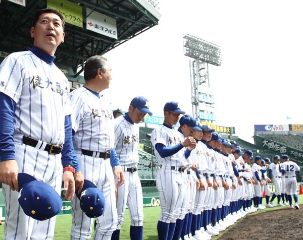センバツでの健大高崎ナインと青柳監督(C)日刊ゲンダイ