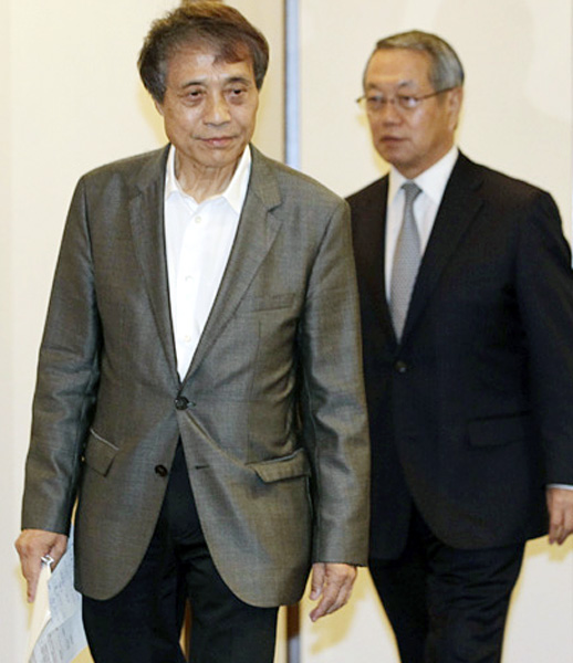 安藤氏と共に会見を行った河野JSC理事長(右)/(C)日刊ゲンダイ