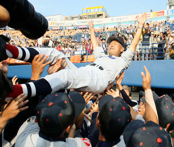 選手に胴上げされる渡辺監督(C)日刊ゲンダイ