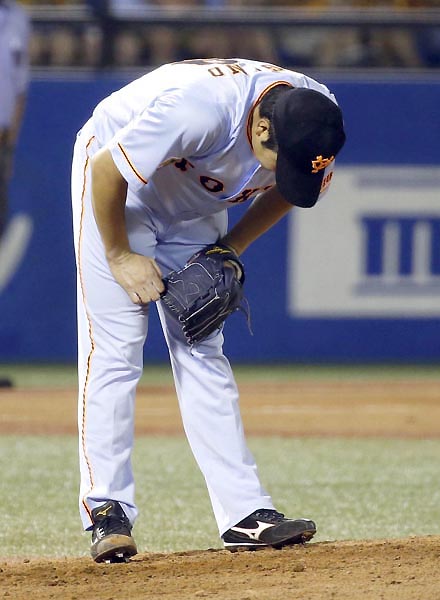 六回に痛恨の逆転弾を浴び、ガックリの菅野(C)日刊ゲンダイ