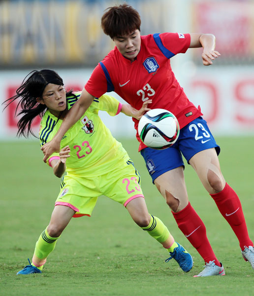 韓国戦のMF柴田(右)も見せ場は少なかった(C)六川則夫/ラ・ストラーダ