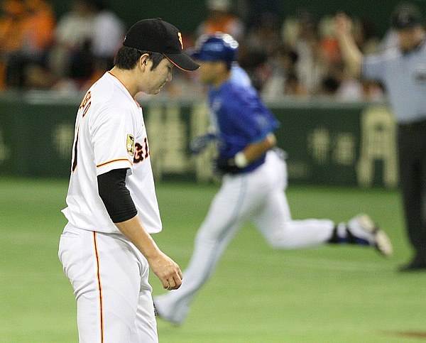 筒香に逆転2ランを浴びてうなだれる菅野(C)日刊ゲンダイ