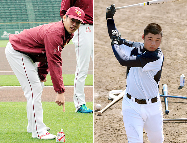 楽しみだという楽天の松井(左)とU18W杯を前に練習する清宮(C)日刊ゲンダイ