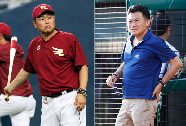 辞意を表明した大久保監督(左)と三木谷オーナー(C)日刊ゲンダイ