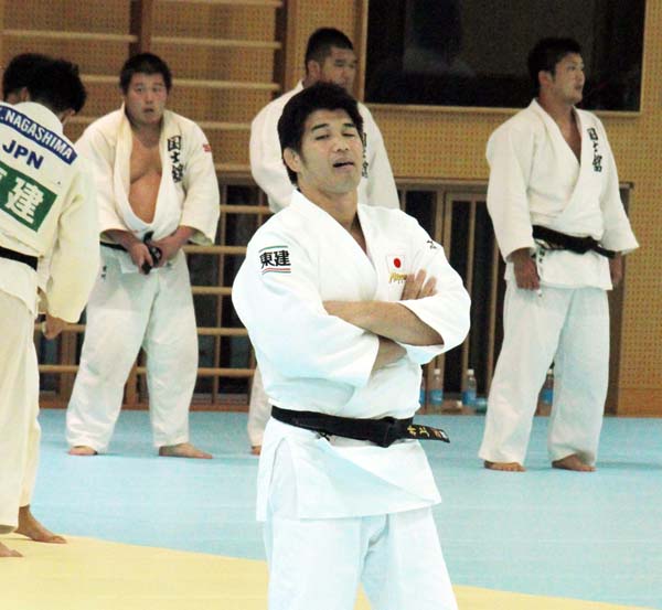 稽古を見守る井上康生監督(C)日刊ゲンダイ