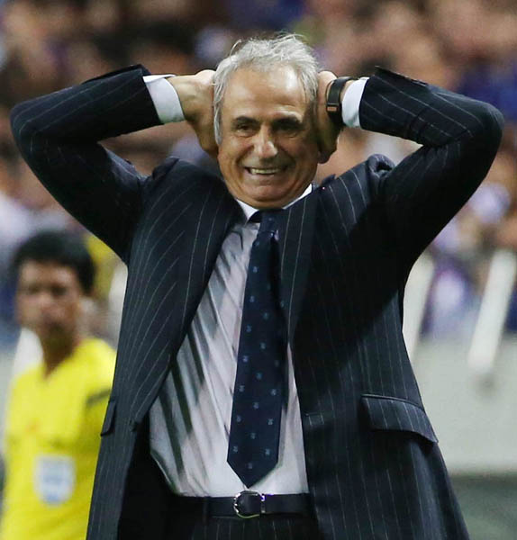 カンボジア戦で悔しがるハリルホジッチ監督(C)日刊ゲンダイ
