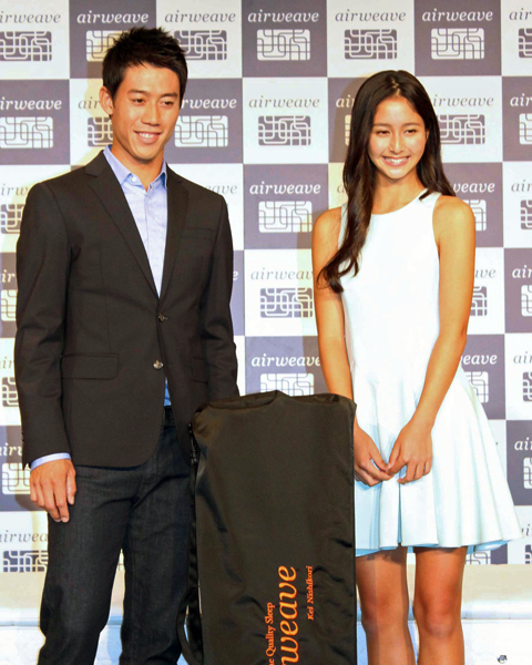 高反発マットレスパッド「エアウィーヴ」CM発表会での錦織(C)日刊ゲンダイ