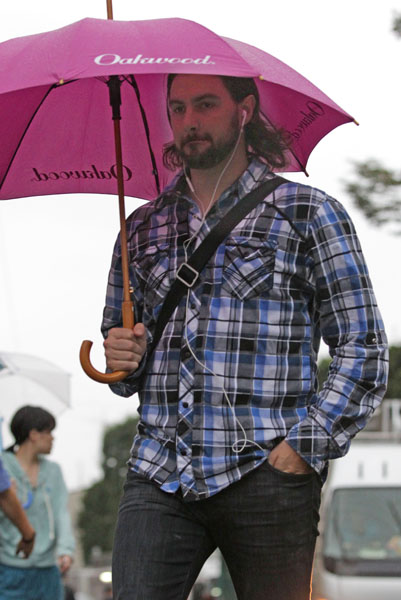 雨天中止となり帰宅するバーネット(C)日刊ゲンダイ
