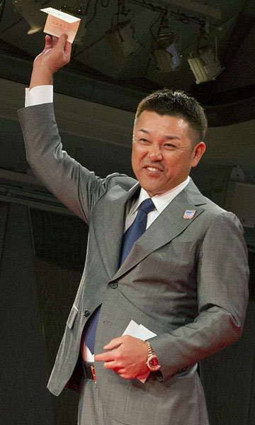 小笠原の交渉権を引き当てた谷繁監督(C)日刊ゲンダイ