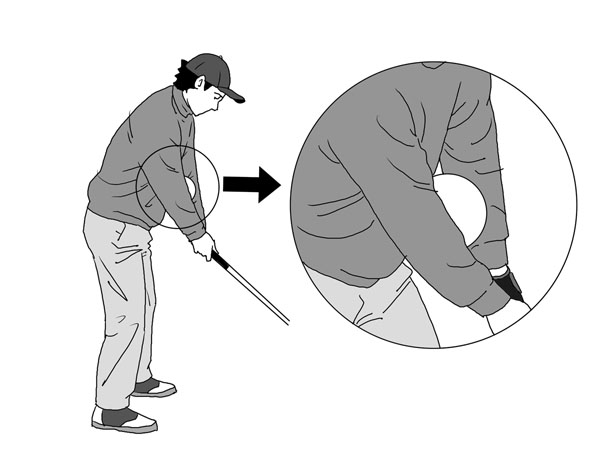 両肘でボールを挟んだ練習は手打ちを自然に矯正する