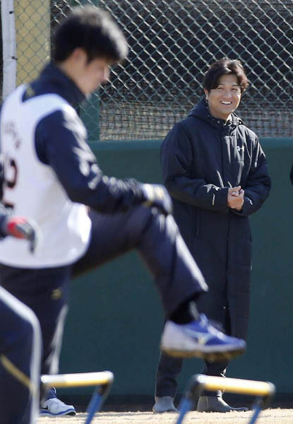 笑顔で新人の動きを見守った高橋監督(C)日刊ゲンダイ
