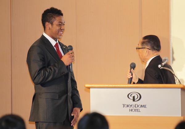 恒例の「話し方講座」では笑顔を見せたオコエだが…(C)日刊ゲンダイ