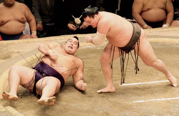 白鵬(右)もインフルでダウンした過去が(C)日刊ゲンダイ