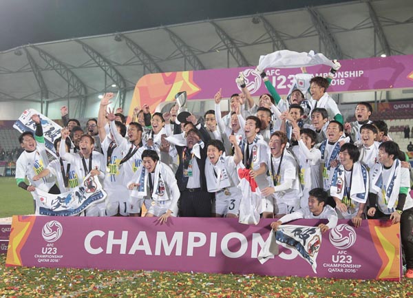 優勝記念撮影に応じるU-23日本代表(C)六川則夫/ラ・ストラーダ