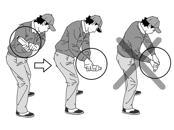 ダウンスイング後半ではペットボトルの向きを180度変える