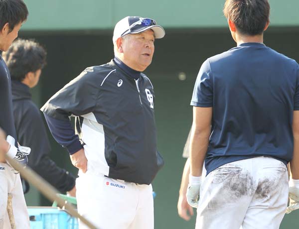 若手にアドバイスする加藤秀司コーチ(C)日刊ゲンダイ