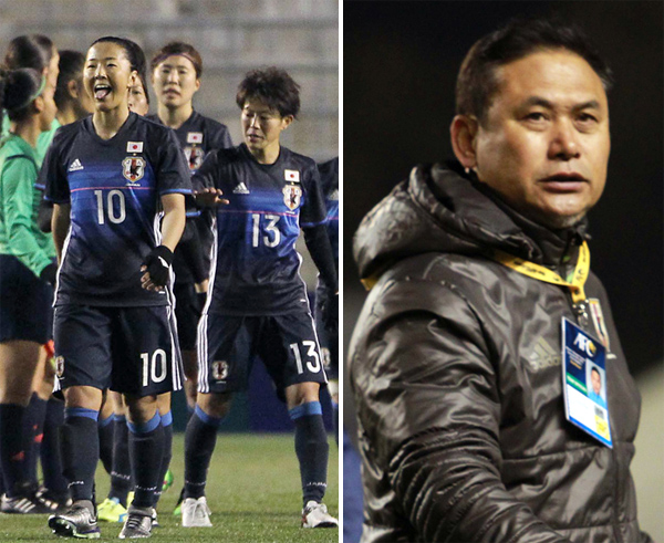 不発のFW大儀見(左)と佐々木則夫監督(C)日刊ゲンダイ