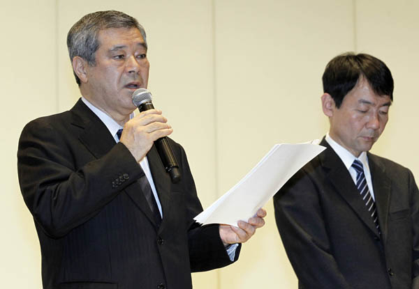 8日に会見した久保球団社長(左)と森田執行役員総務本部長(C)日刊ゲンダイ