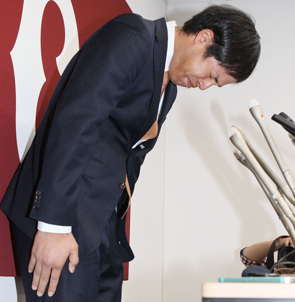 会見で高木京介は深々と頭を下げた(C)日刊ゲンダイ