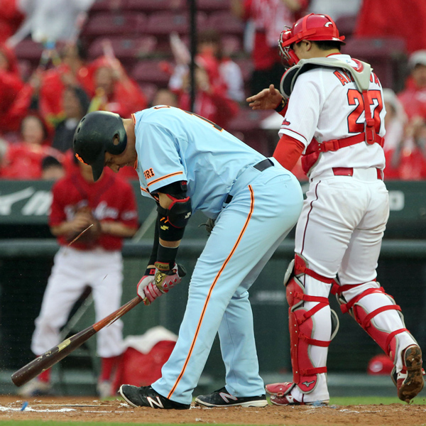 チャンスに三振に倒れ、バットをへし折るクルーズ(C)日刊ゲンダイ