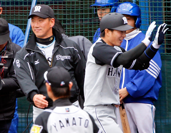 北條を出迎える金本監督(C)日刊ゲンダイ