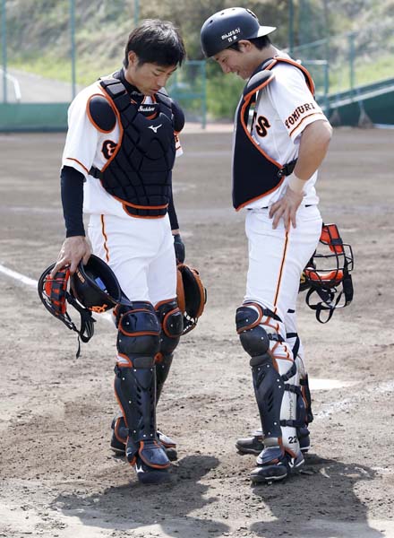 頭を寄せて話し込む寺内(左)と小林(C)日刊ゲンダイ