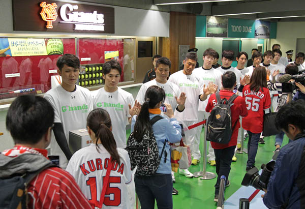 試合前に熊本地震の募金活動を行った巨人坂本(左)ら/(C)日刊ゲンダイ