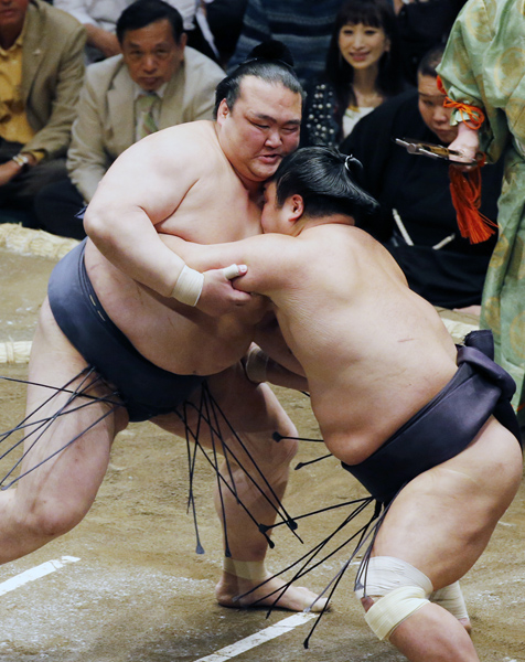 妙義龍を寄り切りで下した稀勢の里(C)日刊ゲンダイ