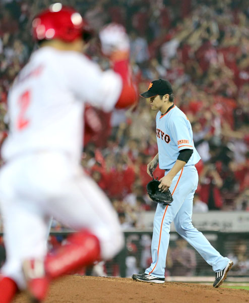 六回に田中(左)に3ランを浴びた山口(C)日刊ゲンダイ
