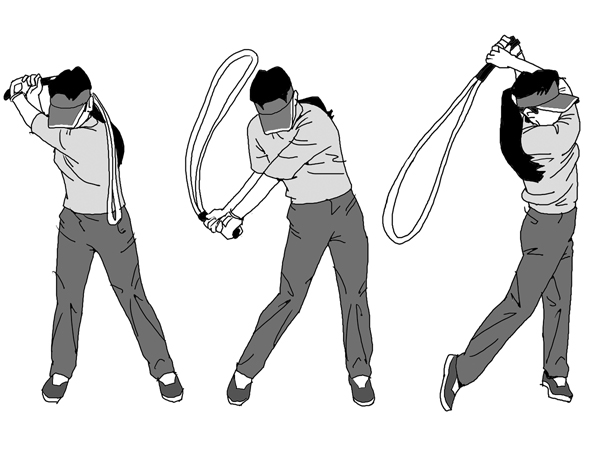下半身リードのダウンスイング会得にはゴムホースでの素振りがオススメ