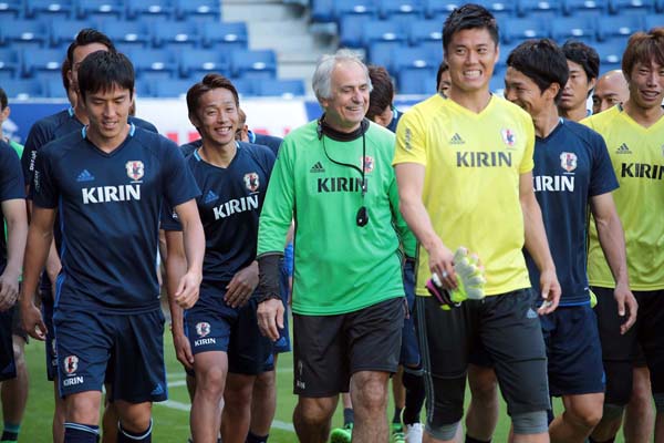5日の練習で明るい表情の代表の面々(C)六川則夫/ラ・ストラーダ