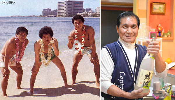 ハワイキャンプで(左からフリッパー上原、具志堅用高、本人)/(C)日刊ゲンダイ