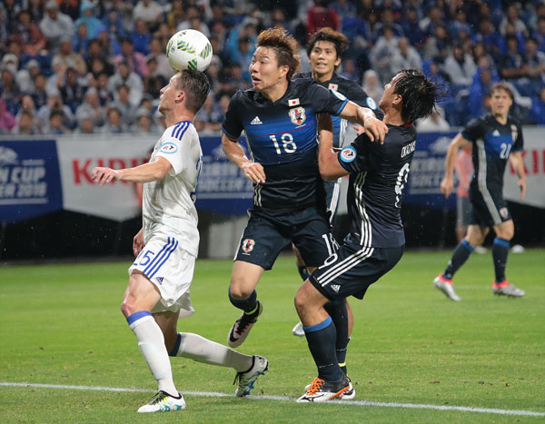 ゴール前でFW岡崎とかぶってしまったFW浅野(C)六川則夫/ラ・ストラーダ