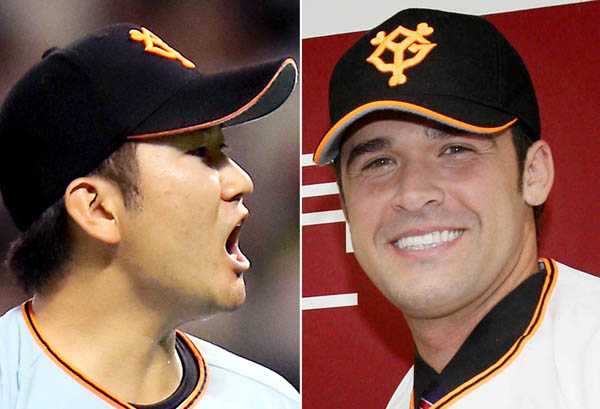 五回にピンチを切り抜け球審に向かって叫ぶ菅野(左)とギャレット(C)日刊ゲンダイ