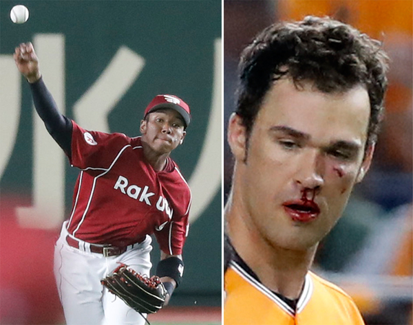 二回のオコエのレーザービーム、右は流血退場したギャレット(C)日刊ゲンダイ
