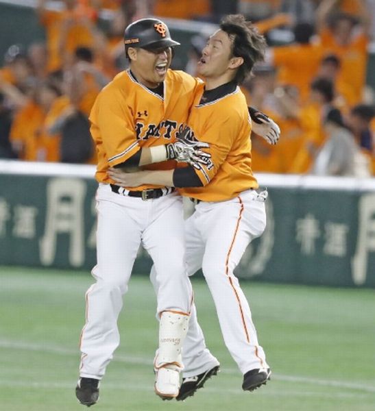 サヨナラ打の村田に真っ先に飛びつく長野(C)日刊ゲンダイ