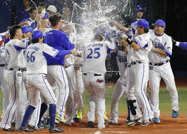 サヨナラ弾でチーム迎えられる(C)日刊ゲンダイ