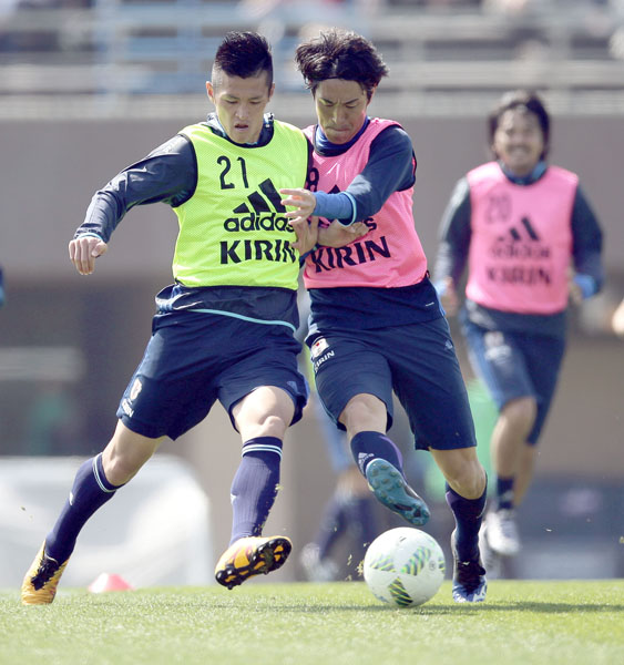 代表合宿で競り合う植田(左)/(C)Norio Rokukawa/Office La Stradada