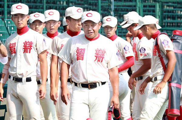 智弁学園の小坂監督(央)と選手たち(C)日刊ゲンダイ