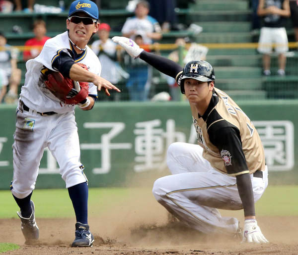 中田の併殺打で封殺された大谷(C)日刊ゲンダイ