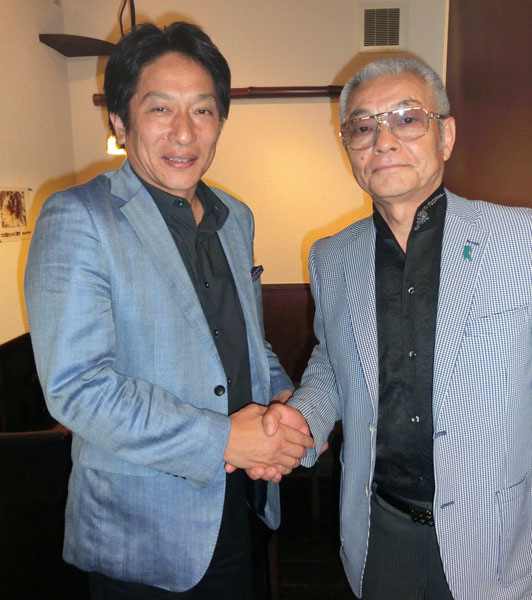 10日の出雲駅伝前日に握手を交わす原監督(左)と野々村氏(C)日刊ゲンダイ