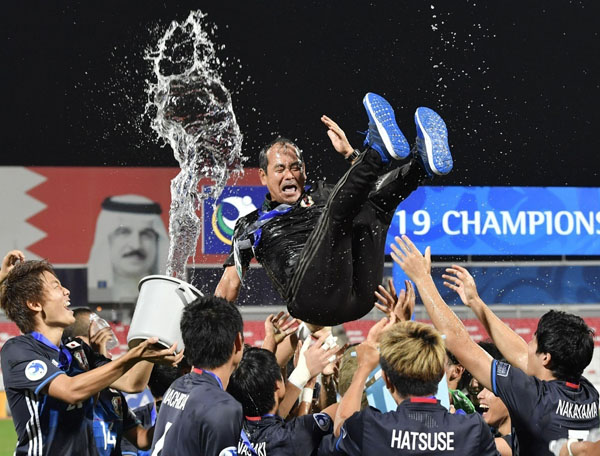 U-19アジア選手権で初優勝し胴上げされる(C)共同通信社