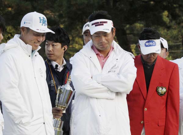朴(右)に優勝をさらわれた池田(央)と谷原(左)/(C)日刊ゲンダイ