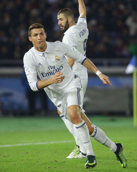 ハットトリックのC.ロナウドと先制点のベンゼマ(後ろ)/(C)日刊ゲンダイ