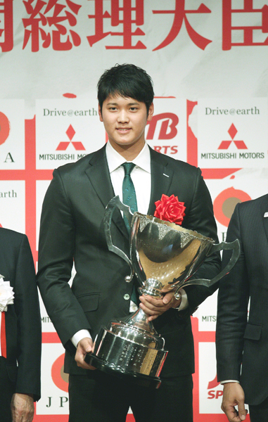 「多くのプロアスリートの中から選ばれ光栄」と語った大谷(C)日刊ゲンダイ