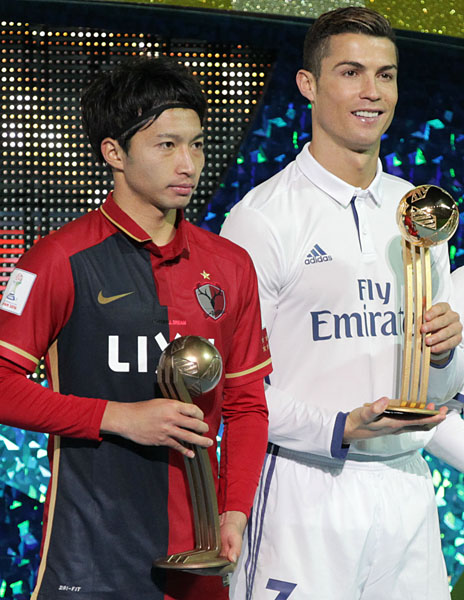 MVPを獲得したロナウドの横で表彰を受ける柴崎(C)日刊ゲンダイ