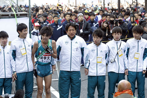 青学大が3連覇した箱根駅伝は大人気(中央は原晋監督)/(C)日刊ゲンダイ