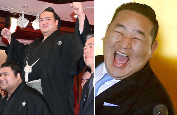 横綱として3月場所に挑む稀勢の里(左)と朝青龍(C)日刊ゲンダイ