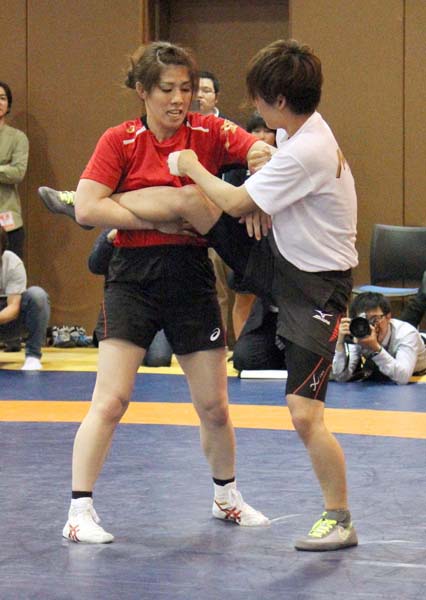 レスリングの吉田(左)と柔道の近藤がスパーリング(C)日刊ゲンダイ