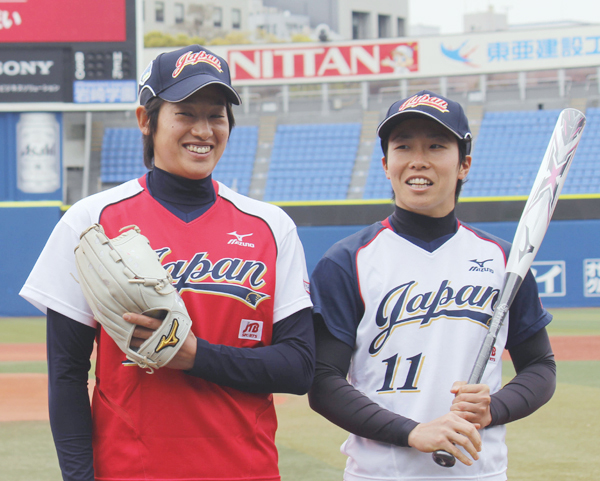 上野由岐子(左)と主将の山田恵里(C)日刊ゲンダイ